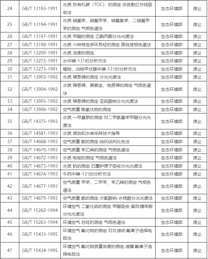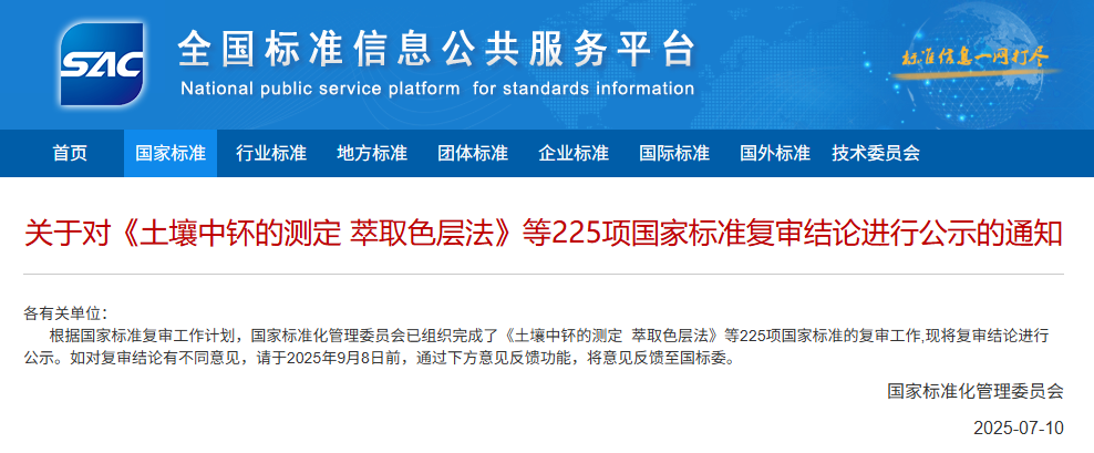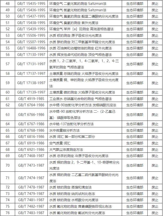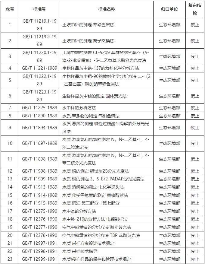 國家標(biāo)準(zhǔn)化管理委員會近日發(fā)布通知,對《土壤中钚的測定 萃取色層法》等225項國家標(biāo)準(zhǔn)的復(fù)審結(jié)論進(jìn)行公示。根據(jù)公示內(nèi)容,其中由生態(tài)環(huán)境部歸口管理的84項國家標(biāo)準(zhǔn)被建議廢止,且廢止過渡期為“公告即廢止”。