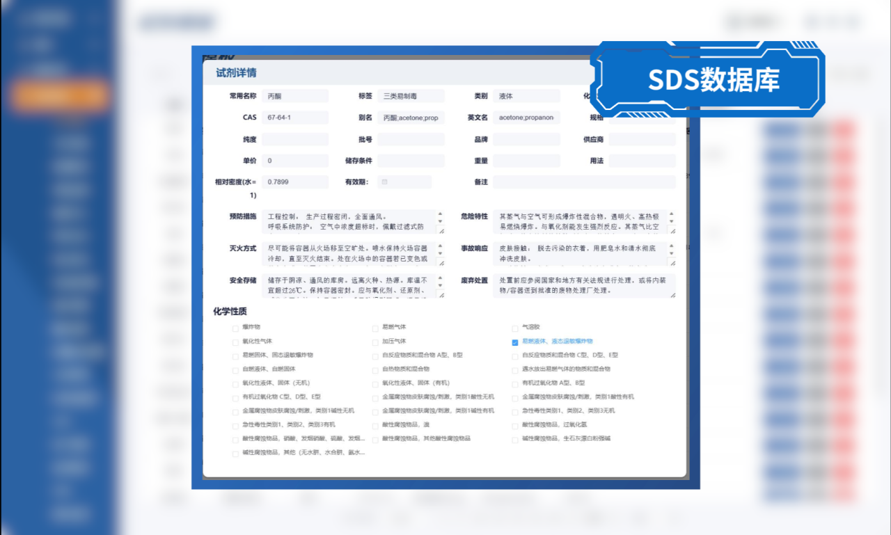 系統(tǒng)提供7000+種化學(xué)試劑基礎(chǔ)信息,包括但不限于理化性質(zhì)、儲(chǔ)存注意事項(xiàng)和禁忌等,持續(xù)收錄更新,便于用戶查詢?cè)噭┬畔ⅰ?/span>