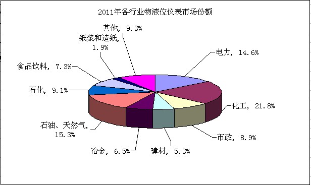 2011 年各行業(yè)物液位儀表市場(chǎng)份額