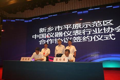 接下來舉行了協(xié)會與新鄉(xiāng)市平原示范區(qū)戰(zhàn)略合作協(xié)議簽字儀式。戰(zhàn)略合作協(xié)議由新鄉(xiāng)市平原示范區(qū)管委會主任路文忠和協(xié)會專職副理事長兼秘書長李躍光共同簽署,新鄉(xiāng)市平原示范新區(qū)黨工委書記鹿建宇,中國儀器儀表行業(yè)協(xié)會名譽(yù)理事長向曉波、汪力成見證簽約。