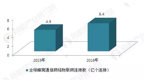 2015-2016年全球蜂窩通信網(wǎng)絡(luò)物聯(lián)網(wǎng)連接數(shù)(單位:億個(gè)連接)