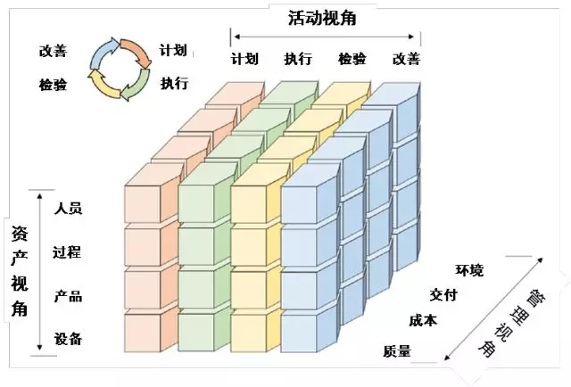 資產視角向生產組織展示該SMU的資產或財產,包括人員、過程、產品和設備四種類型,這與RAMI4.0模型中的資產基本一致。有些資產還可以在不同SMU之間傳輸?;顒右暯巧婕霸?/span>SMU的人員和設備所執行的各種活動,包括“計劃、執行、檢驗、改善、活動”的不斷循環。管理視角說明實施的目的,并指出管理要素“質量、成本、交付、環境”之間的關系。IVRA SMU是基于日本管理學的持續改善(Kaizen)概念提出的,SMU的資產和活動都應以控制質量、成本、交期準確率、環境為目標。因此,在每個SMU 中通過操作“人員、過程、產品、設備”資產,重復進行“計劃->執行->檢驗->改善”的生產活動循環,以實現提高“質量、成本、交付、環境”評估指標。