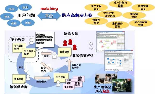 IVI已經按照八大類成立了22個專業的工作組來收集生產現場的各類業務場景,并建立共享經濟循環平臺Ecosystem,以實現用戶實際問題與供應商解決方案的匹配,如圖10所示。