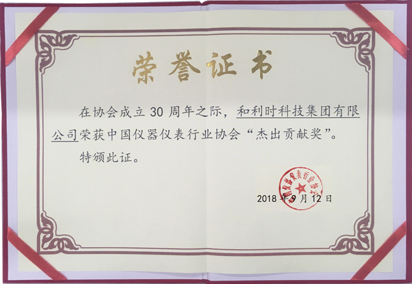 和利時科技集團(tuán)有限公司榮獲了中國儀器儀表行業(yè)協(xié)會杰出貢獻(xiàn)獎