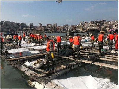 武警官兵清理污染海域