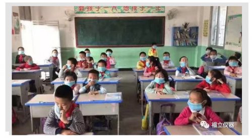 當(dāng)?shù)貙W(xué)生戴著口罩上課
