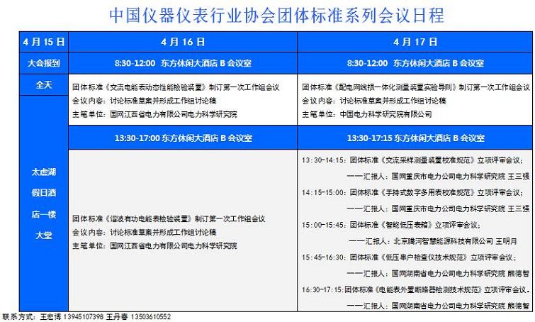 1、中國儀器儀表行業協會團體標準系列會議(16~17日):