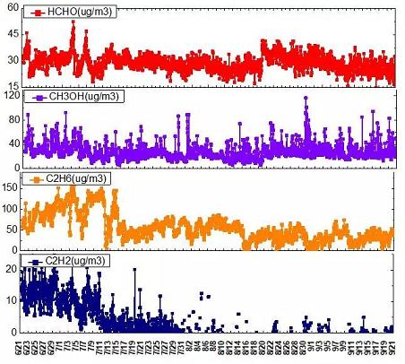 圖2 車載FTIR所測VOCs各污染物的濃度值