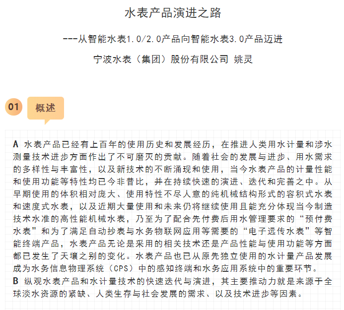 核心閱讀:寧波水表(集團)股份有限公司是中國儀器儀表行業(yè)協(xié)會行業(yè)協(xié)會副理事長單位,是一家具有六十余年歷史的水計量行業(yè)領軍企業(yè),隨著科學技術的發(fā)展,公司率先啟動智能水表的商用研究。本文介紹一下寧波水表(集團)股份有限公司和智能水表3.0產(chǎn)品(管網(wǎng)參數(shù)綜合采集中心專題)的詳細情況。
