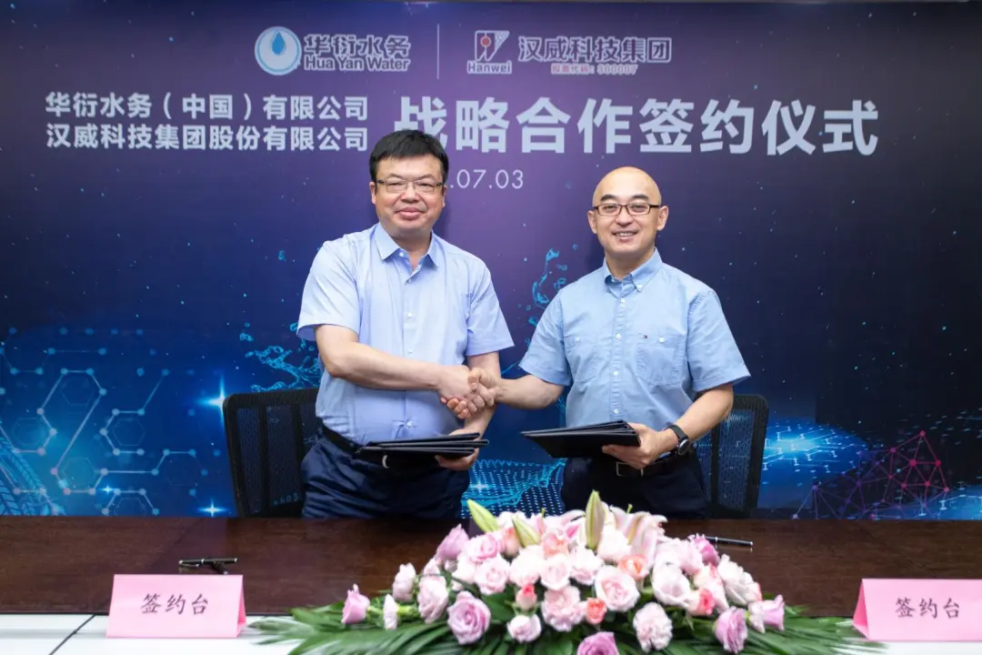 7月3日,漢威科技集團與華衍水務(中國)有限公司在蘇州簽署戰略合作協議,雙方將聚焦智慧水務,通過整合各自優勢資源,形成聯動機制,增強雙方團隊協作能力,共同打造物聯網行業與水務領域深度合作的典范,為雙方客戶提供更好的服務。漢威科技集團董事長任紅軍與港華集團高級副總裁孫云峰代表雙方簽約。