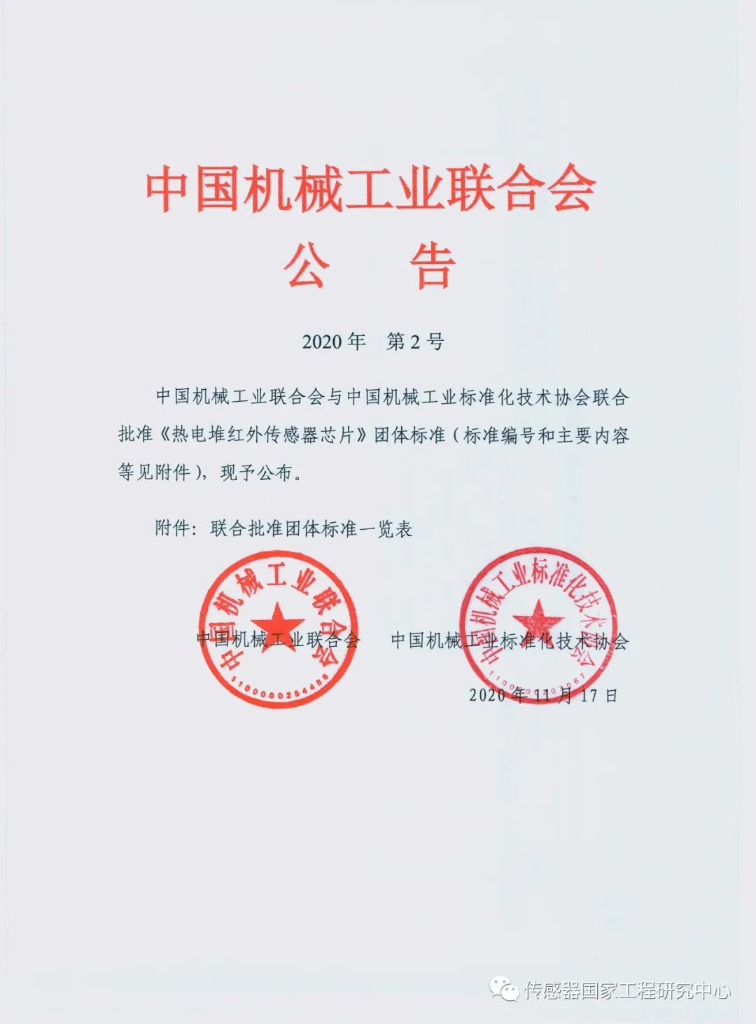 熱電堆紅外傳感器芯片是測溫儀器的核心元器件,針對疫情重點(diǎn)防控物資急需現(xiàn)狀,沈陽儀表院依托傳感器國家工程研究中心技術(shù)優(yōu)勢,制定了團(tuán)體標(biāo)準(zhǔn)“熱電堆紅外傳感器芯片”。經(jīng)過標(biāo)準(zhǔn)征求意見、標(biāo)準(zhǔn)審查、標(biāo)準(zhǔn)報(bào)批等工作流程,該標(biāo)準(zhǔn)以中國機(jī)械工業(yè)聯(lián)合會2020年第2號公告批準(zhǔn)發(fā)布,標(biāo)準(zhǔn)編號為:T/CMIF116-2020,實(shí)施日期為:2020年12月1日。