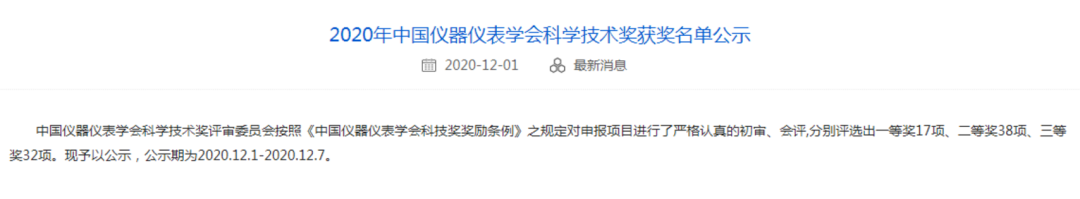 近日,北京吉天儀器有限公司(以下簡稱“吉天儀器”)自主研發生產的快速溶劑萃取儀APLE-3500榮獲“2020年中國儀器儀表學會科技進步三等獎”,這也是繼2019年原子熒光Kylin系列產品獲得二等獎后,吉天儀器的又一主打產品得到行業認可并獲此殊榮。