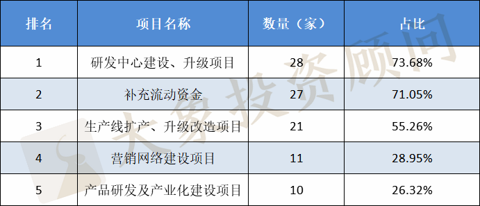 2015-2020 年期間新上市的38家企業(yè)的 IPO 募投項(xiàng)目主要有以下幾個方面:
