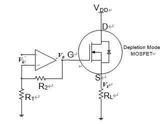 圖 3. 耗盡型 MOSFET 與運(yùn)算放大器組成的電壓源示意圖