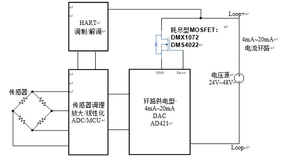 下面,以一款常用的智能變送器為例簡(jiǎn)要說(shuō)明耗盡型 MOSFET 在工業(yè)傳感器、智能變送器中的典型應(yīng)用。