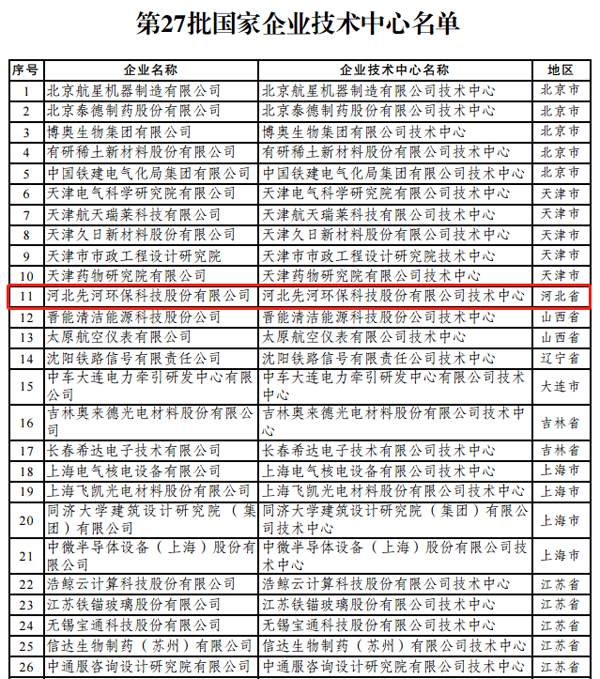 近日,根據(jù)《國家企業(yè)技術中心認定管理辦法》(國家發(fā)展改革委 科技部 財政部 海關總署 稅務總局2016年第34號令),經(jīng)審定,2020年(第27批)新認定及全部國家企業(yè)技術中心名單發(fā)布,先河環(huán)保被正式認定為國家級企業(yè)技術中心,成為2020年(第27批)國家級企業(yè)技術中心河北省唯一一家在列名單企業(yè)!