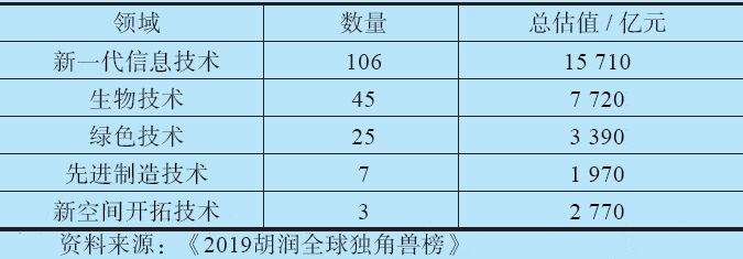 表1.2 2019 年全球技術驅動獨角獸概況