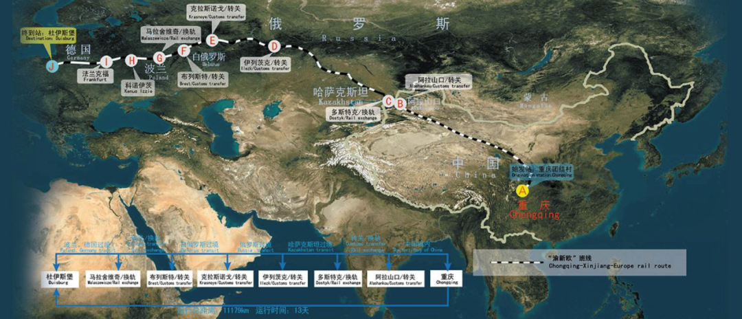 得到北京方面的許可以及和五個國家斡旋后,這條大陸橋被完全打通,僅需13-16天就可以將重慶電子產品運到德國的杜伊斯堡,時間僅為海運的1/3,高價值貨物運輸成本比海運還低。