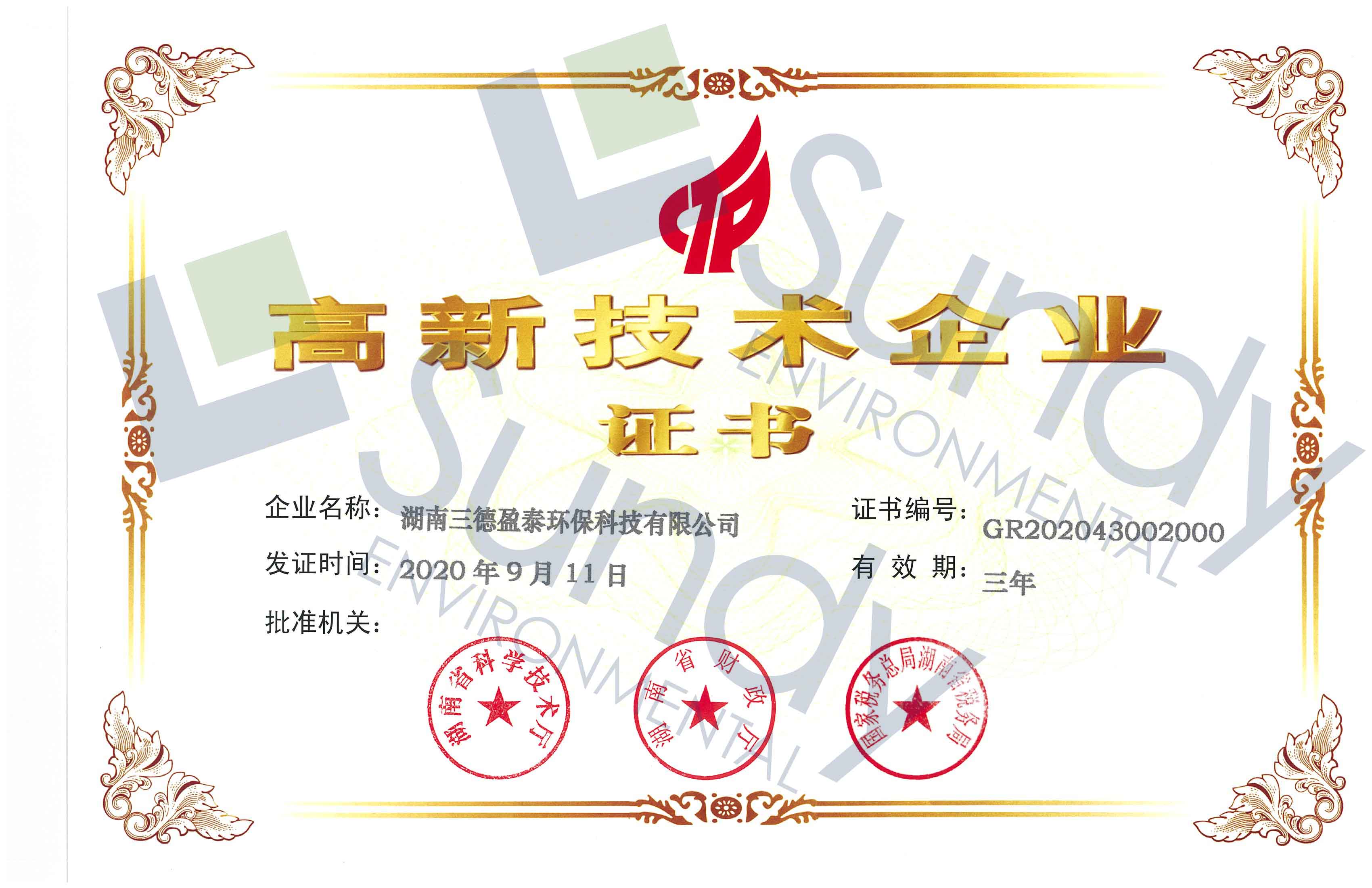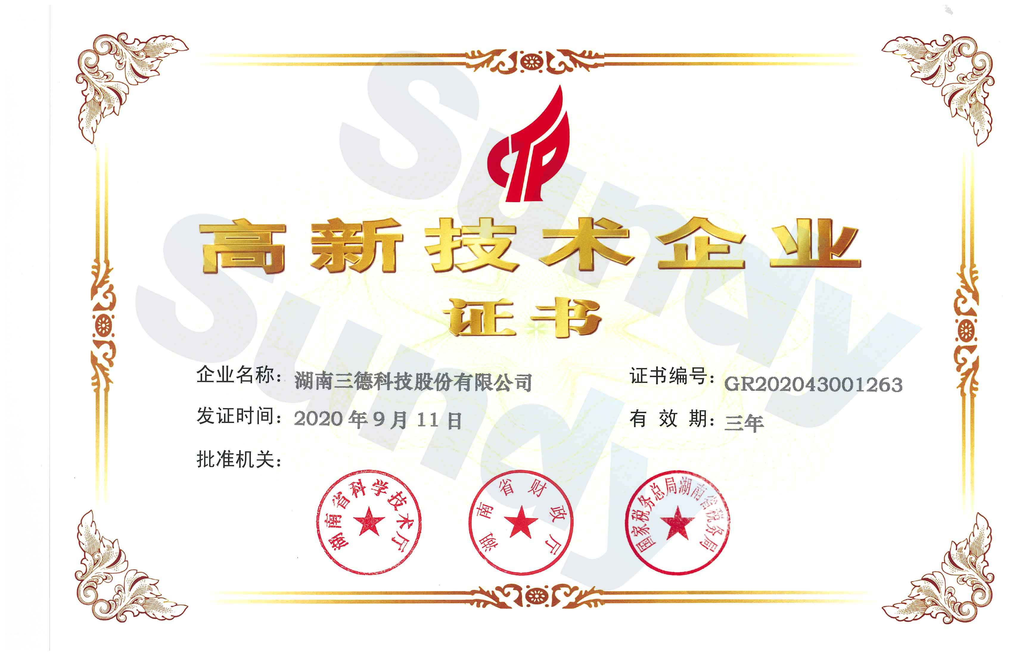 近日,湖南三德科技股份有限公司(下簡稱“三德科技”)及湖南三德盈泰環(huán)保科技有限公司(下簡稱“三德環(huán)保”)分別收到湖南省科學(xué)技術(shù)廳、湖南省財政廳、國家稅務(wù)總局湖南省稅務(wù)局聯(lián)合頒發(fā)的《高新技術(shù)企業(yè)證書》,二者同時獲評為“高新技術(shù)企業(yè)”。