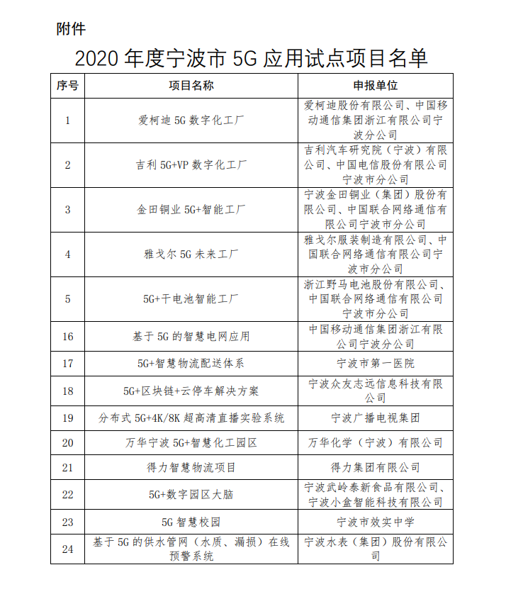 根據(jù)《關(guān)于征集2020年寧波市5G應(yīng)用試點(diǎn)項(xiàng)目的通知》(甬經(jīng)信箋[2020]284號)要求,經(jīng)過單位申報(bào)、部門推薦、專家實(shí)地考察評審,寧波水表(集團(tuán))股份有限公司(以下簡稱:寧水集團(tuán))的“基于5G的供水管網(wǎng)(水質(zhì)、漏損)在線預(yù)警系統(tǒng)”等24個(gè)項(xiàng)目被列入2020年度寧波市5G應(yīng)用試點(diǎn)項(xiàng)目名單,并于2021年1月26日至2021年2月1日進(jìn)行了網(wǎng)上公示。該項(xiàng)目主要內(nèi)容有管網(wǎng)綜合感知終端/多參數(shù)水表(智能水表3.0產(chǎn)品)、5G通信終端、管網(wǎng)(水質(zhì)、漏損)在線預(yù)警平臺等關(guān)鍵技術(shù)的研制,以及工程化應(yīng)用等。