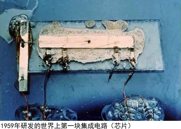 1958年9月12日,德州儀器公司電子工程師杰克·基爾比(1923年-2005年)發明了集成電路,并在1959年成功制造出世界上第一塊集成電路,即芯片。該集成電路就是在一塊鍺片上蝕刻出PNP型晶體管(三極管)、電阻和電容,用外部導線把它們連接成電路。這塊簡陋的集成電路拉開了芯片產業的序幕,也把人類科技水平推向一個新的高峰,并徹底改變了人類的生活方式。