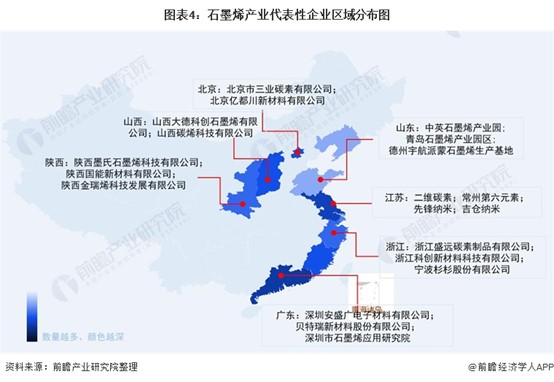 石墨烯產業區域熱力地圖:區域集中在東南沿海地區