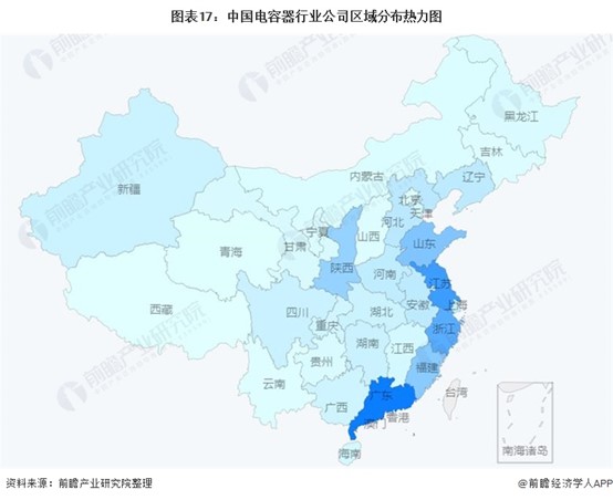 電容器行業的行業集中度較高,主要以日系廠商為主導。從電容器企業的區域集中度來看,截至202183日,廣東省、江蘇省和浙江省的電容器企業數量合計占全國總數的半數左右,說明我國電容器企業的分布是較為集中的,行業發展較為密集。