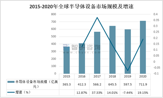 2015-2020年全球半導(dǎo)體設(shè)備市場(chǎng)規(guī)模及增速