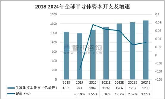 2018-2024年全球半導(dǎo)體資本開(kāi)支及增速