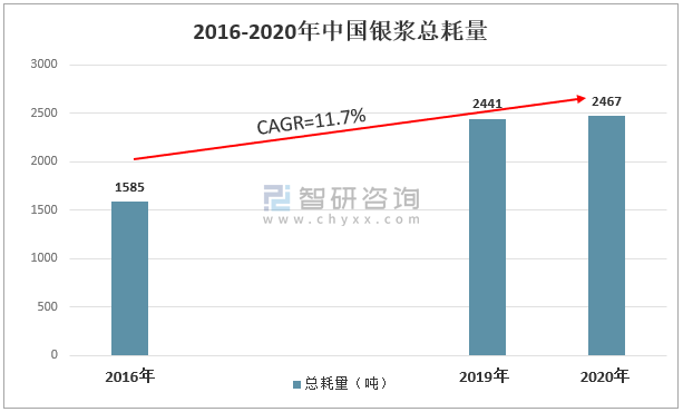 2016-2020年中國銀漿總耗量