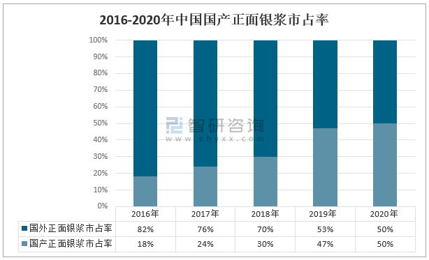 2016-2020年中國國產正面銀漿市占率