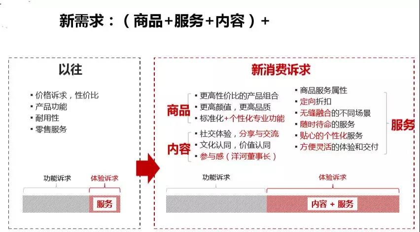 在過去,消費者追求的更多是性價比、產品功能、耐用性等功能訴求;而今天,年輕的消費者不僅僅關注功能性訴求,而且關注內容、服務、參與度、社交體驗、分享與交流等體驗訴求。消費者的需求已變化,我們的供給能否跟上消費者需求的變化。