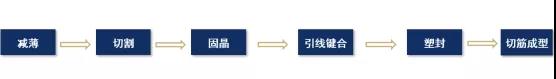 芯片封裝可簡單分為減薄、切割、固晶、引線鍵合、塑封與切筋成型六大環節,每一環節均有對應的設備。