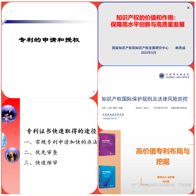 首班培訓主要圍繞"知識產權"展開。協會經過精心籌備并邀請到了國家知識產權局知識產權發展研究中心原主任研究員韓秀成、國家知識產權局原通信發明審查部巡視員李超、環球律師事務所常駐北京合伙人張永華、原國家知識產權局專利局機械發明審查部副處長,原國家知識產權公共服務平臺副總經理馬天旗、北京衛平知識產權代理有限公司董事長閆萍五位專家,分別從知識產權的價值和作用、知識產權國際保護規則及法律風險防控、如何進行專利的申請和授權、如何布局和挖掘高價值專利以及專利證書快速取得的途徑五個主題為學員們提供了精彩的演講。