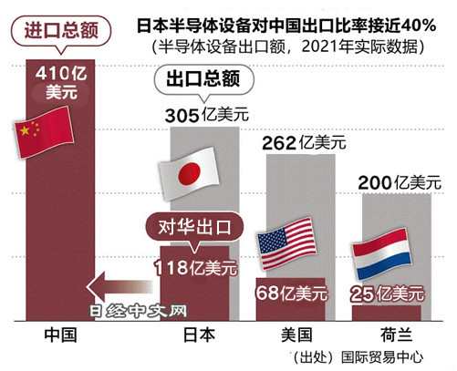 聯(lián)合國國際貿(mào)易中心的統(tǒng)計顯示,日本2021年向中國本土出口的制造設(shè)備達到約120億美元,金額占出口到全世界的設(shè)備的近4成,在所有地區(qū)中最高。出口額是美國對華設(shè)備出口的近2倍。