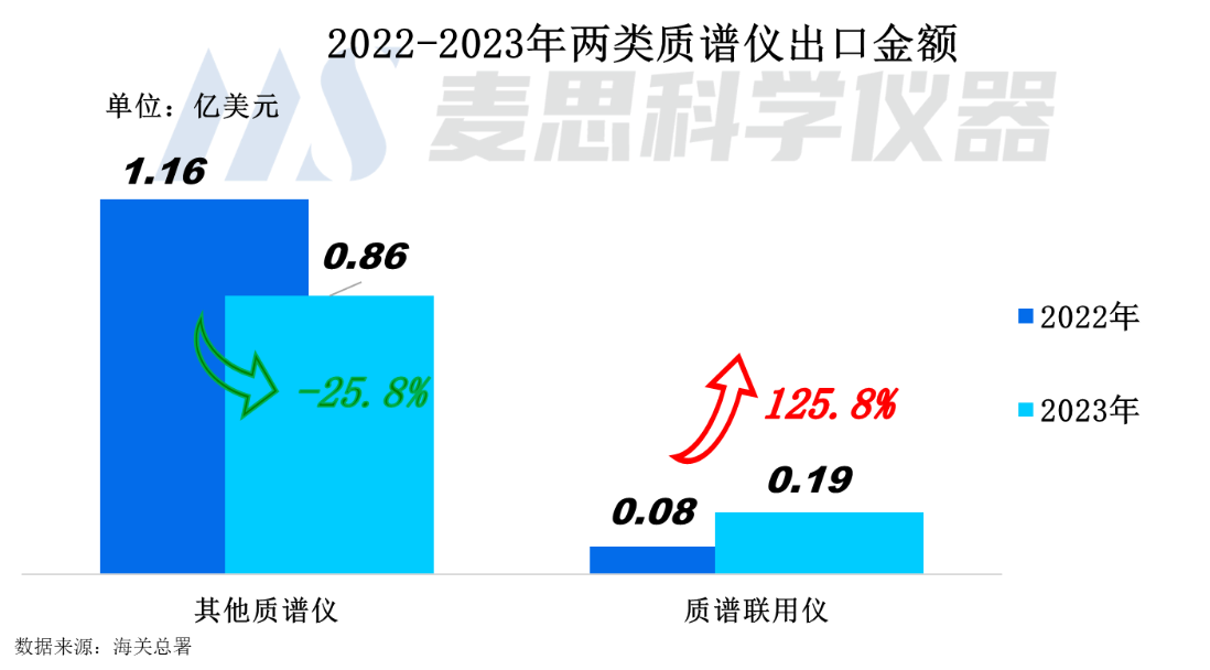 2023年我國質譜儀器出口金額達1.05億美元(約合人民幣7.35億元),同比下降15.5%。