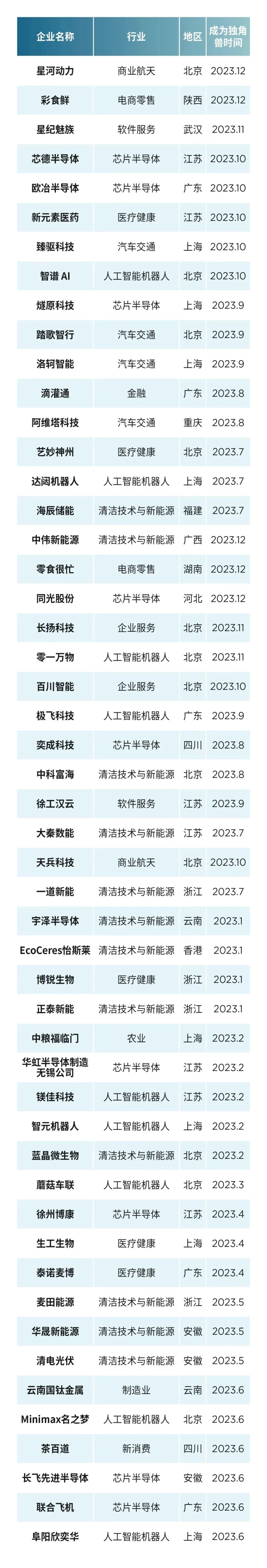 下為2023年中國51家新晉獨(dú)角獸企業(yè)名單: