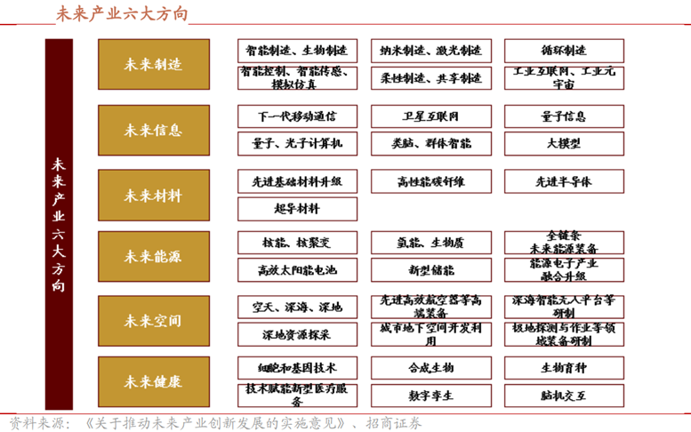 ●未來產業:129日,7部門聯合發布《關于推動未來產業創新發展的實施意見》,其中提出“要重點推進未來制造、未來信息、未來材料、未來能源、未來空間和未來健康六大方向產業發展。”