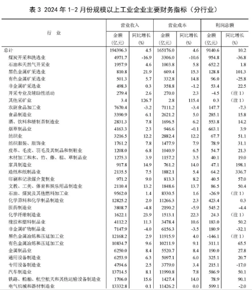1—2月份,全國規(guī)模以上工業(yè)企業(yè)實現(xiàn)利潤總額9140.6億元,同比增長10.2%。