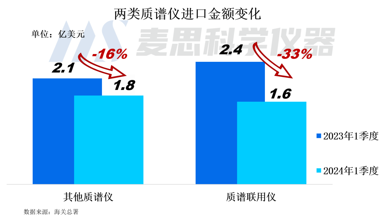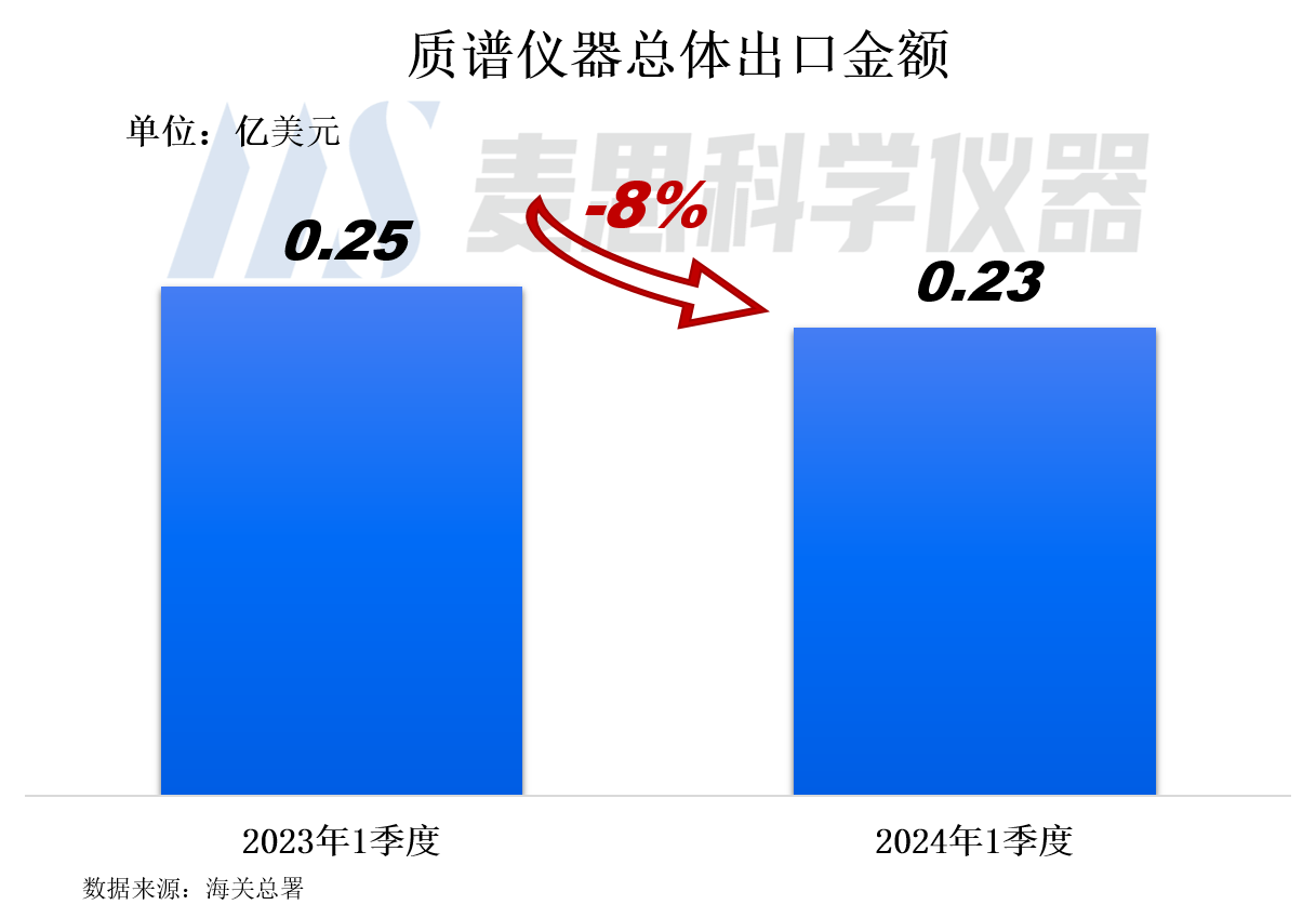 20241季度我國質譜儀器出口金額為2300萬美元(約合人民幣1.64億元),同比下降8%