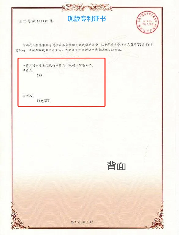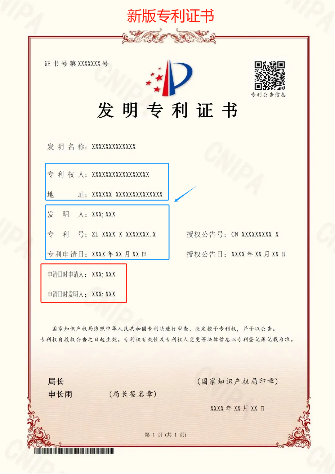 對于授權(quán)公告日在2024年6月1日之后(含當(dāng)日)的專利,國家知識產(chǎn)權(quán)局頒發(fā)新版專利證書。新版專利證書沿用A4規(guī)格豎排版式,優(yōu)化調(diào)整著錄事項布局。