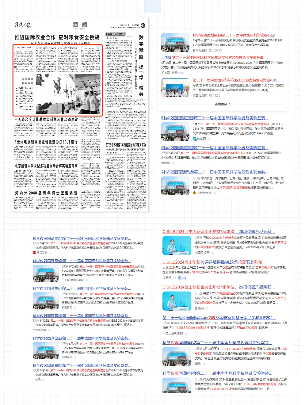 科技日報、中國工業(yè)網(wǎng)、化工儀器網(wǎng)、儀器學(xué)習(xí)網(wǎng)、分析測試百科網(wǎng)、儀器信息網(wǎng)、儀表堂堂網(wǎng)等多家行業(yè)權(quán)威媒體對大會進行了現(xiàn)場采訪報道,向全國乃至全球傳遞了CISILE 2024的盛況和亮點。