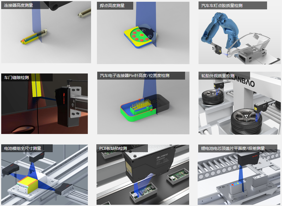 蘭寶激光線掃描3D視覺傳感器是集圖像采集、圖像處理、智能標(biāo)定、應(yīng)用算法于一體的超高集成度智能傳感器。突破了全自動(dòng)標(biāo)定技術(shù),優(yōu)化了材料工藝設(shè)計(jì)等,能夠?qū)崿F(xiàn)高精度測量;利用自主研發(fā)的偏振調(diào)制技術(shù),能夠?qū)μ厥獗粶y面進(jìn)行穩(wěn)定檢測;采用自主研發(fā)的“ASALI”技術(shù),保證信號光強(qiáng)度不變,能夠?qū)崿F(xiàn)抗強(qiáng)環(huán)境光干擾,具有高環(huán)境適用性。產(chǎn)品重復(fù)精度±0.1um,X軸分辨率4.8-5.2um,達(dá)到國內(nèi)領(lǐng)先水平。Z軸線性度達(dá)0.008%,處于國際領(lǐng)先水平。產(chǎn)品內(nèi)置強(qiáng)大的算法平臺,包含角度檢測、平整度檢測、尺寸測量等諸多算法工具,同時(shí)提供配套的視覺軟件,可實(shí)現(xiàn)參數(shù)配置、算法工具配置、AI檢測等功能。目前已滲透消費(fèi)、軍事、工業(yè)領(lǐng)域,在汽車行業(yè)、鐵路建設(shè)養(yǎng)護(hù)、飛機(jī)船舶制造、3C電子行業(yè)、半導(dǎo)體行業(yè)、LCD行業(yè)、鋰電行業(yè)、金屬制造、電子/電氣部件、塑料/橡膠/薄膜行業(yè)、OA/多媒體、工廠自動(dòng)化等領(lǐng)域有著廣泛應(yīng)用,如汽車擋風(fēng)玻璃尺寸檢測、手機(jī)蓋板膠路檢測、芯片針腳共面度檢測、電池焊縫檢測、電路板錫膏厚度檢測、薄膜厚度檢測等等。值得一提的是,該傳感器內(nèi)部的關(guān)鍵器件已基本實(shí)現(xiàn)了國產(chǎn)替代,確保了產(chǎn)品的完全自主可控。