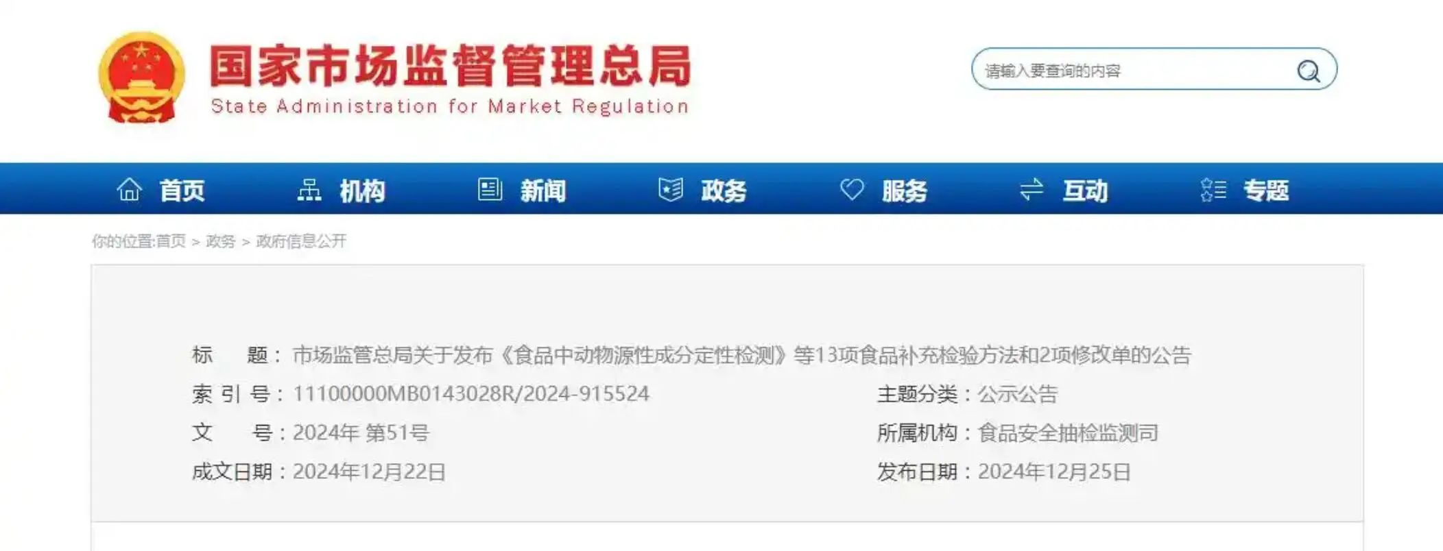 根據(jù)《中華人民共和國(guó)食品安全法實(shí)施條例》有關(guān)規(guī)定,近期,市場(chǎng)監(jiān)管總局批準(zhǔn)發(fā)布《食品中動(dòng)物源性成分定性檢測(cè)》等13項(xiàng)食品補(bǔ)充檢驗(yàn)方法和2項(xiàng)修改單。