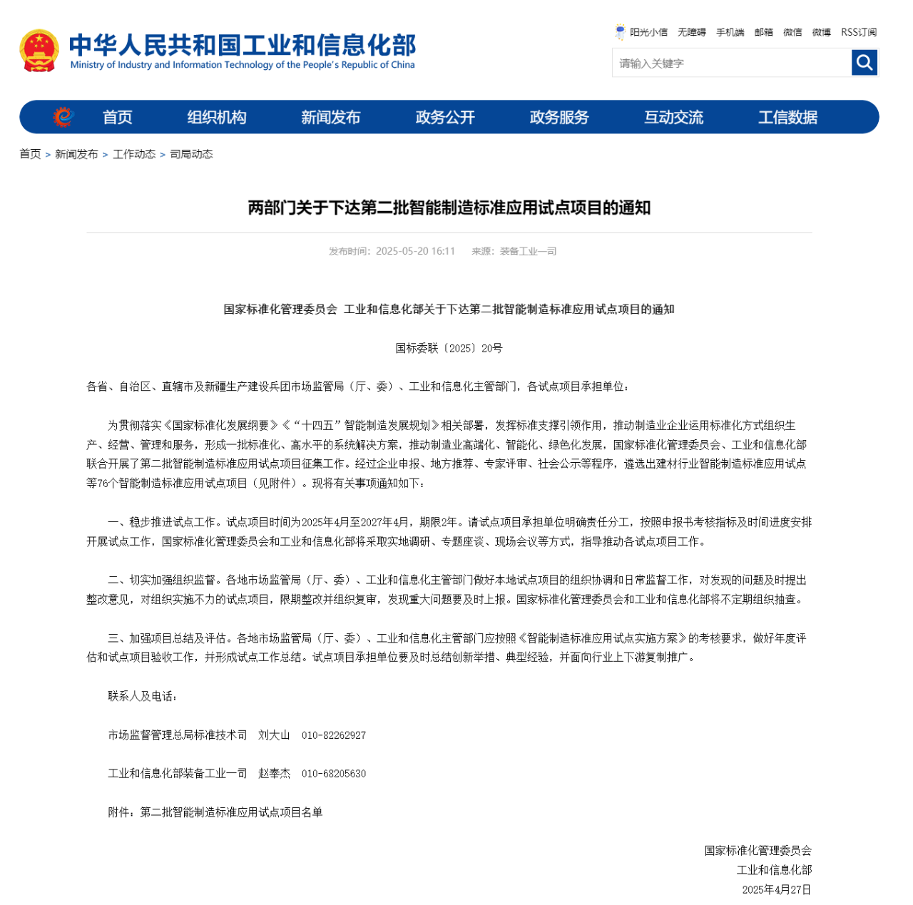 經(jīng)過企業(yè)申報(bào)、地方推薦、專家評(píng)審、社會(huì)公示等程序,國家標(biāo)準(zhǔn)化管理委員會(huì)、工業(yè)和信息化部近日下達(dá)第二批智能制造標(biāo)準(zhǔn)應(yīng)用試點(diǎn)項(xiàng)目名單,中核控制系統(tǒng)工程有限公司的“核設(shè)施DCS裝備智能制造標(biāo)準(zhǔn)應(yīng)用試點(diǎn)”,浙江萬勝智能科技股份有限公司的“智能配用電智能工廠標(biāo)準(zhǔn)應(yīng)用試點(diǎn)”,福建順昌虹潤精密儀器有限公司的“面向智能儀表生產(chǎn)的智能工廠標(biāo)準(zhǔn)應(yīng)用試點(diǎn)”,三川智慧科技股份有限公司的“智能水表智能工廠建設(shè)標(biāo)準(zhǔn)應(yīng)用試點(diǎn)”等76個(gè)智能制造標(biāo)準(zhǔn)應(yīng)用試點(diǎn)項(xiàng)目進(jìn)入名單。試點(diǎn)項(xiàng)目時(shí)間為2025年4月至2027年4月,期限2年。