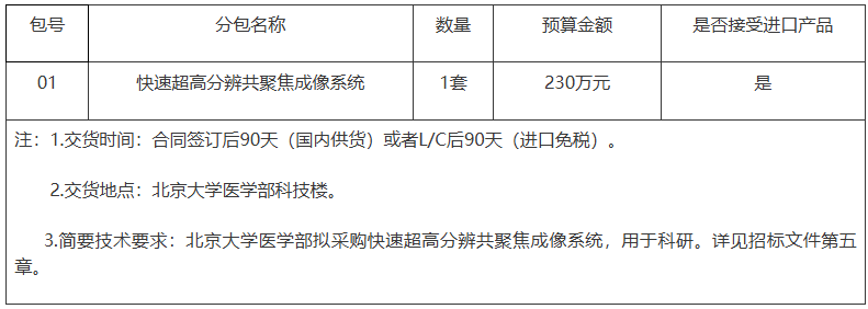 項(xiàng)目名稱:北京大學(xué)醫(yī)學(xué)部快速超高分辨共聚焦成像系統(tǒng)采購項(xiàng)目