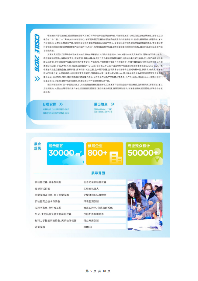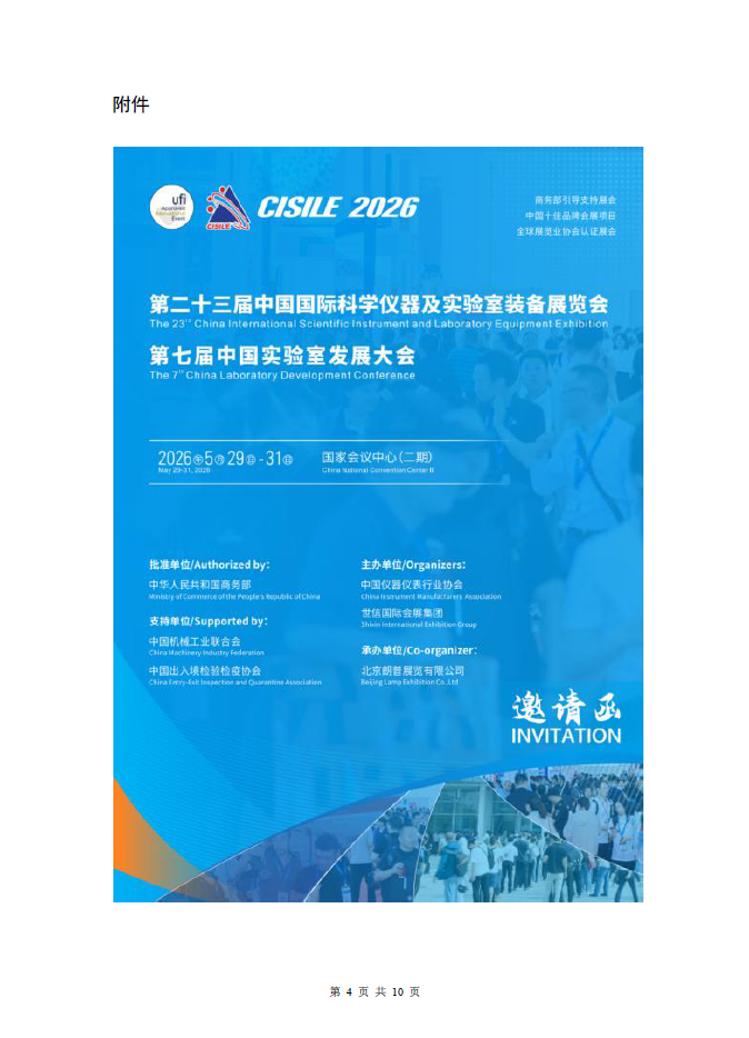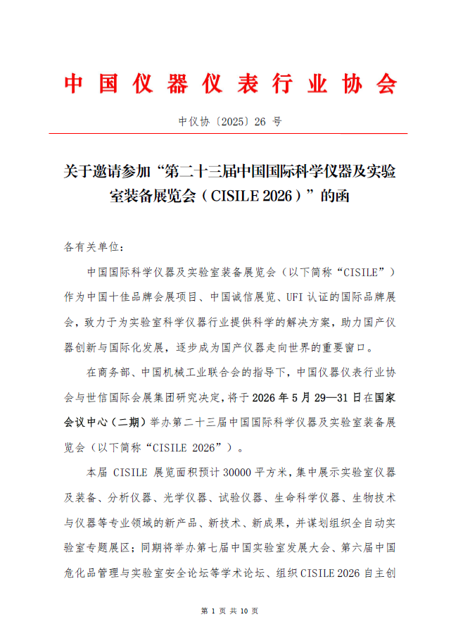 摘要:第二十三屆中國國際科學儀器及實驗室裝備展覽會將于2026年5月29-31日在國家會議中心(二期)舉辦,本屆 CISILE 展覽面積預計 30000平方米,集中展示實驗室儀器及裝備、分析儀器、光學儀器、試驗儀器、生命科學儀器……
