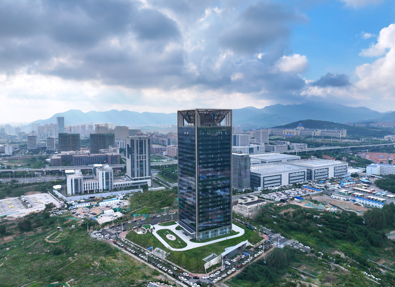 特來電總部基地大樓位于山東省青島市嶗山區,建筑面積約4.3萬平方米,總高度117米,共有23層辦公區,日均用電量約6000度。該棟建筑東、西、南三個外立面均安裝建筑一體化光伏玻璃幕墻,可將吸收的太陽能轉化為源源不斷的電能,日發電量達1500度,可實現全樓最高25%的綠能替代。