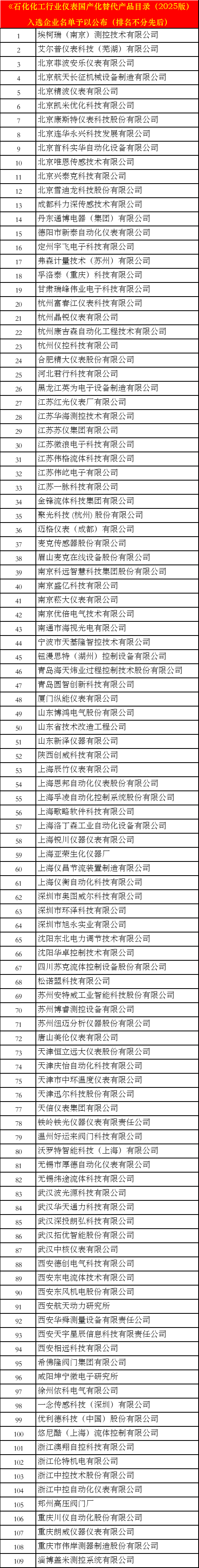 附件:《石化化工行業(yè)儀表國(guó)產(chǎn)化替代產(chǎn)品目錄(2025版)》入選企業(yè)名單