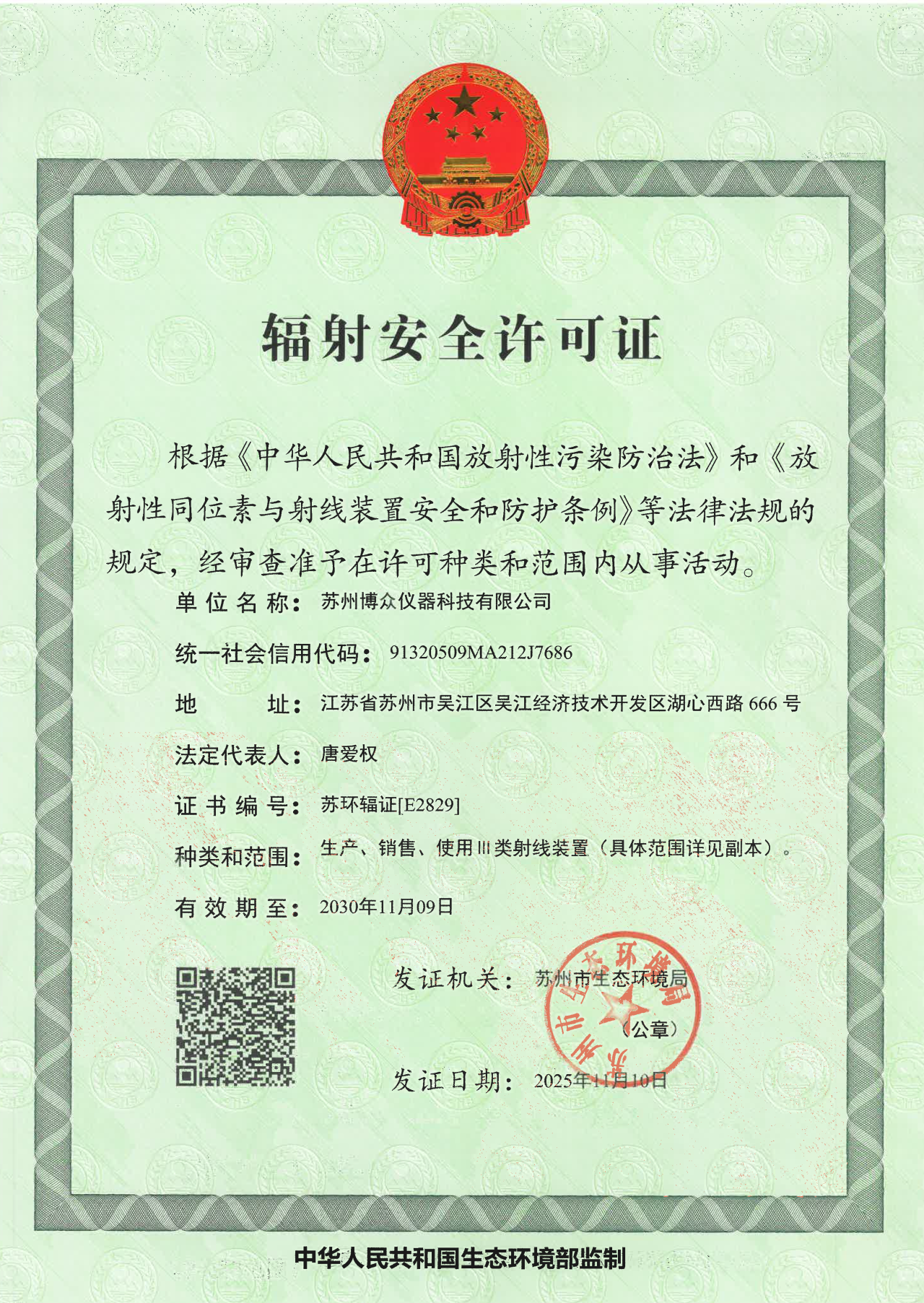 20251110日,蘇州博眾儀器科技有限公司(以下簡稱“博眾儀器”)的BZ-F200透射電鏡獲批首張國產200kV透射電鏡“生產、銷售、使用Ⅲ類射線裝置”的輻射安全許可證,成為唯一獲批此資質的國產透射電鏡企業。
